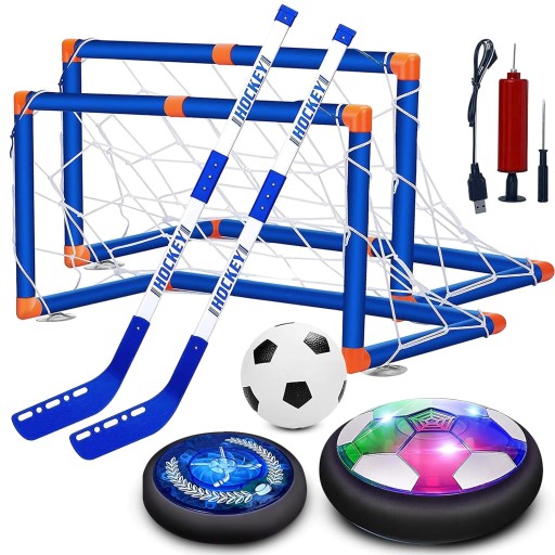 -Zabawki to najlepszy zabójca czasu dla dzieci! W zestawie piękne pudełko upominkowe zawierające: 1 * piłkę nożną Lewitacja Starry Sky, 1 * nadmuchiwaną piłkę nożną, 1 * pompkę do pompowania, 1 * hokej, 2 * kije hokejowe, 2 * bramki (z siatką), 2 * kabel do ładowania USB.