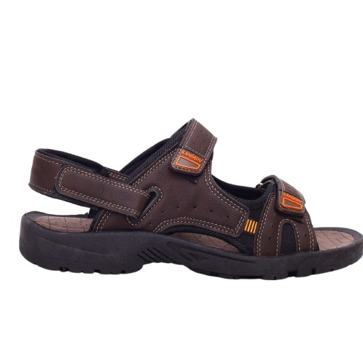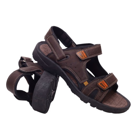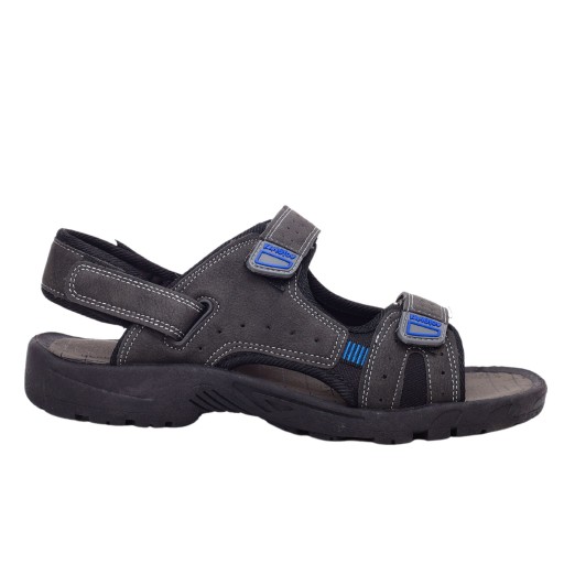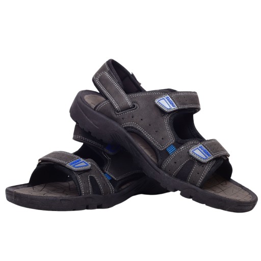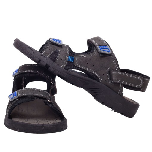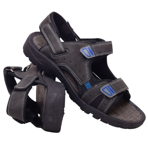 Męskie sandały zapinane na rzep w kolorze szarym, brązowym lub czarnym na płaskim spodzie. Idealnie sprawdzą się jako obuwie na co dzień w letnie, upalne dni. Prosty fason dopasuje się tęgości stopy . Lekka podeszwa skutkuje dłuższą wytrzymałością obuwia.