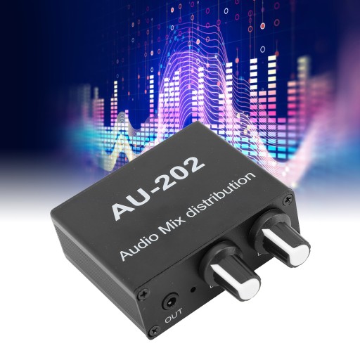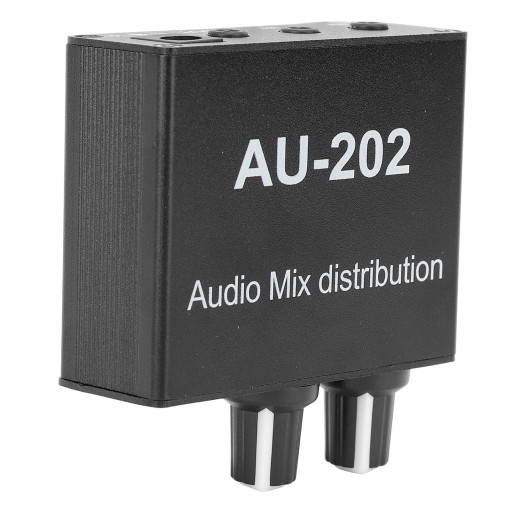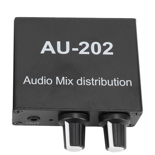 Mikser stereo 2 wejścia, 2 wyjścia, niezależna regulacja głośności, niski poziom hałasu Mały mikser dźwięku 3,5 mm do słuchawek DC 5-24 V