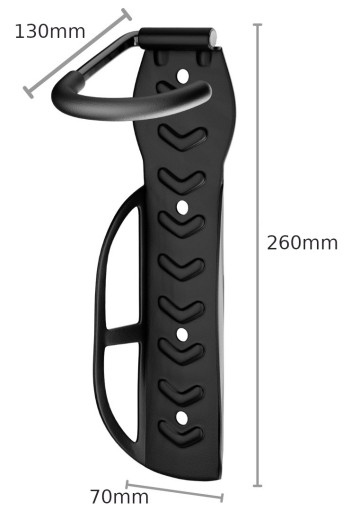 Ten rowerowy uchwyt ścienny składa się z dużego metalowego haka, którego można użyć do zawieszenia roweru na przednim kole. Hak może pomieścić opony i obręcze o szerokości do 7,5 cm. Rower zawiesza się pionowo na stojaku, dzięki czemu zajmuje on mniej miejsca, co pozwala utrzymywać porządek w miejscu przechowywania roweru.