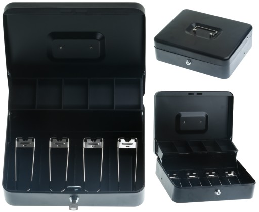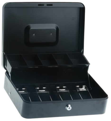 Wykonana z wytrzymałej blachy stalowej, zapewnia bezpieczeństwo i trwałość. Kaseta posiada cztery przegrody z dociskami na banknoty oraz wielokomorową skrzynkę na bilon, które pomagają utrzymać porządek. Skrzynka na bilon posiada również zamykaną klapę, zapewniając tym samym bezpieczeństwo przechowywanych monet.