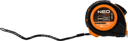 Miara zwijana stalowa 5 m x 19 mm, auto blokada, dwa przyciski stop 67-222 marki NEO TOOLS to narzędzie z taśmą o długości 5 m i szerokości 19 mm. Wyposażone w praktyczną funkcję autostopu, która zapobiega samoistnemu zwijaniu się miarki po wysunięciu, jak i możliwości użycia dwóch blokad. Obudowa miary NEO TOOLS została wykonana z dwóch rodzajów materiałów. Narzędzie posiada lśniącą powłokę chroniącą podziałkę przed starciem. Z kolei wbudowany amortyzator, wpływa na bardziej łagodny proces zwijania taśmy. Narzędzie posiada zgodność z dyrektywą MID class II. Dodatek nylonu wpływa na odpowiednią wytrzymałość oraz wygodę użytkowania tej miary NEO TOOLS.
