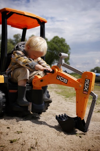 W kokpicie koparki JCB znajduje się dużo miejsca dla dziecka, a fotelik jest wygodny. Fotel operatora JCB można dowolnie obracać w zależności od wykonywanych operacji kopania lub ładowanie.
