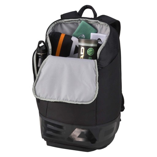 Uwolnij swój pełen potencjał dzięki obszernej przegrodzie głównej, w której bez problemu zmieścisz wszystkie niezbędniki na trening i nie tylko. Plecak wyposażono ponadto w specjalną przegrodę na rakiety, która zapewni bezpieczny schowek dla jednej lub dwóch rakiet. Doświadcz idealnego połączenia stylu i funkcjonalności. Starannie zaprojektowane kieszenie zapinane na zamek — przednia oraz dwie boczne — zapewniają szybki i łatwy dostęp do podręcznych przedmiotów, kiedy jesteś w biegu. Zintegrowana przegroda na obuwie pozwala oddzielić buty od reszty zawartości plecaka.