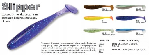 Typowa miękka przynęta przypominająca swoim kształtem małą rybkę. Dzięki gładkiemu korpusowi oraz sprężystemu ogonkowi, bardzo mocno wychyla się na boki, prowokując agresywne drapieżniki do ataku. Świetnie sprawdza się w połowach sandaczy, boleni, szczupaków i okoni.