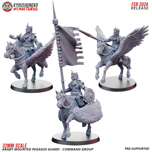 Przedmiotem sprzedaży jest zestaw modeli Command Group Araby Mounted Pegasus Guards od Kyoushuneko Miniatures.
