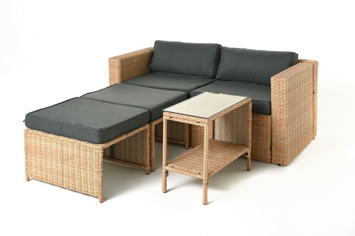 Stwórz swoją idealną przestrzeń relaksu z zestawem mebli ogrodowych Palermo mini! Dzięki możliwości dowolnego łączenia poszczególnych elementów, możesz dostosować układ mebli do swoich potrzeb. Na przykład, połącz fotel i pufę, tworząc wygodny leżak, lub zestaw fotele, zyskując kanapę.