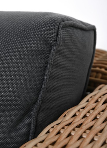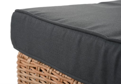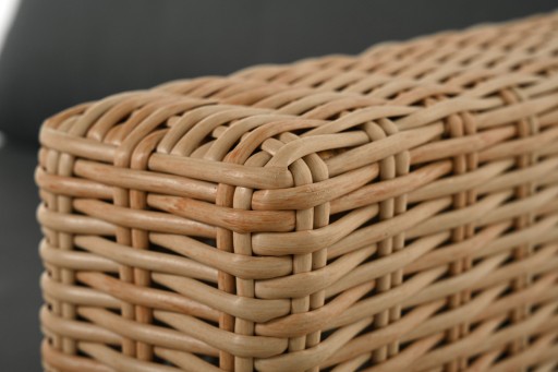 - Ręcznie tkany technorattan: Meble wykonane są ze stabilnej stalowej ramy pokrytej ręcznie plecionym technorattanem, odpornym na warunki atmosferyczne i uszkodzenia.
