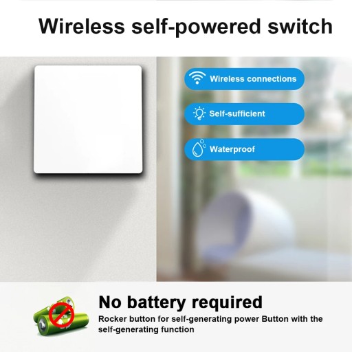 1. Przełącznik bezprzewodowy z własnym zasilaniem: bez kabli, bez baterii, łatwa instalacja, ochrona środowiska i brak zanieczyszczeń.