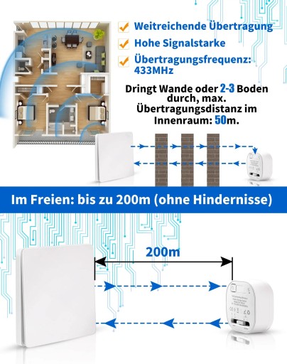 3. Szybkie przekształcenie istniejącej pozycji przełącznika, utworzenie przełącznika w dowolnym miejscu lub jako przenośny pilot zdalnego sterowania, zdalnie sterowana lampka nocna itp. Jako halogen/żarówka/światło fluorescencyjne/LED.