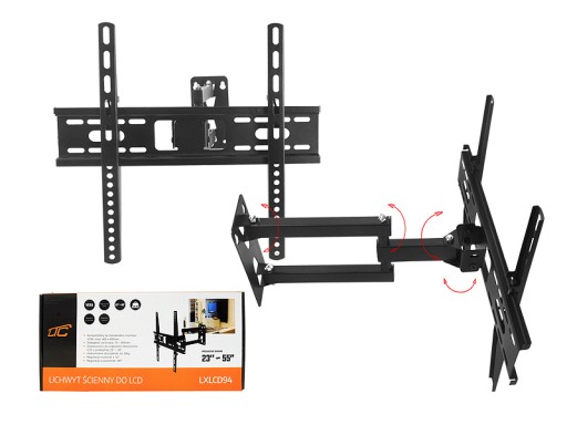 Uchwyt TV ścienny w wersji LXLCD94 posiada rozkładane ramię, dzięki czemu możliwa jest regulacja odległości telewizora od ściany, a dodatkowo, uchwyt umożliwia regulację położenia urządzenia w trzech płaszczyznach. Uniwersalny uchwyt do telewizorów plazmowych LXLCD94 cechuje się trwałą i mocną konstrukcją, która bez problemu wytrzymuje obciążenie do 35 kg, i tym samym zapewnia optymalny poziom bezpieczeństwa dla każdego montowanego ekranu.