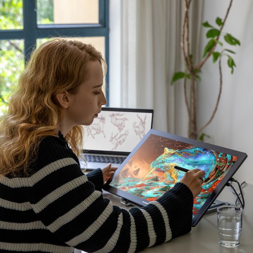 Wyświetlacz wbudowany w tablet graficzny Huion Kamvas Pro 19 posiada niezwykle wysokie odwzorowanie kolorów dzięki fabrycznej kalibracji. Matryca posiada 99% pokrycie palety barw sRGB, 96% pokrycie Adobe RGB, 98% pokrycie DCI-P3, a panel wyświetla 1,07 miliarda kolorów. Dzięki fabrycznej kalibracji na linii produkcyjnej, każdy egzemplarz posiada współczynnik ΔE <1,5, który gwarantuje realistyczne odwzorowanie kolorów.