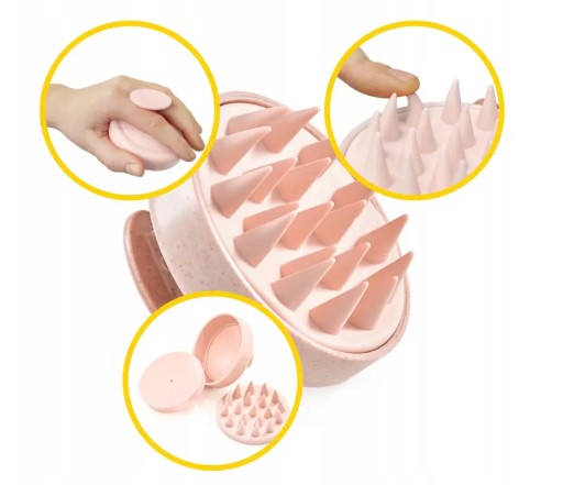 Szczotka do mycia i masażu głowy inspirowana akupunkturą zapewnia kompleksową pielęgnację skóry głowy. Pomaga w utrzymaniu zdrowych włosów, usuwając pozostałości produktów, brud, kurz i sebum. Dzięki ergonomicznemu uchwytowi nie wyślizguje się z rąk, a miękkie silikonowe wypustki poprawiają krążenie i złuszczają martwy naskórek.
