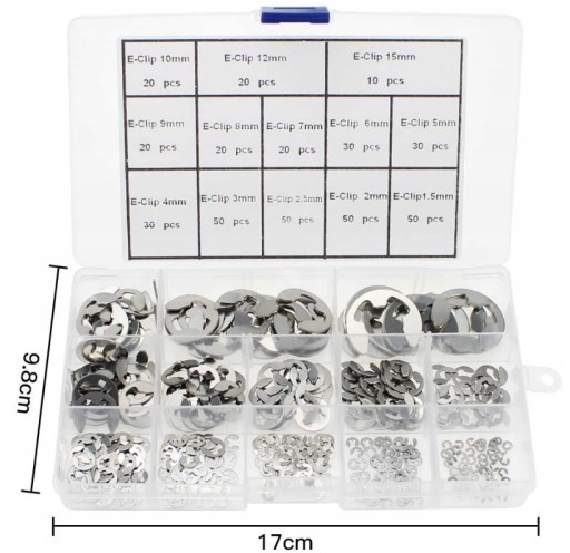 1x400 szt. Zestaw asortymentowy pierścieni zabezpieczających E-Clip