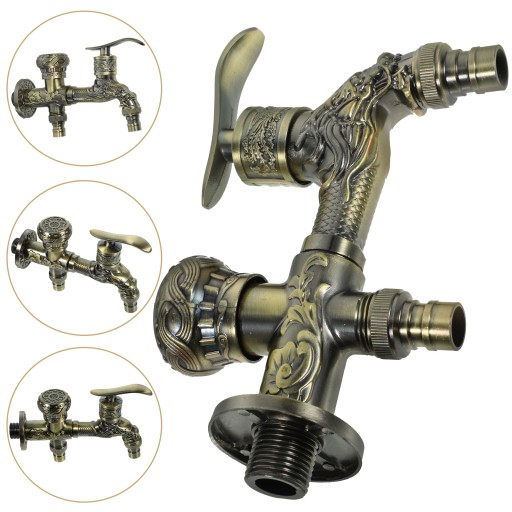 ✅ Zabytkowy kran z 2 wylotami jest używany głównie jako kran ogrodowy, kran do pralki, kran do zlewu z mopem itp.