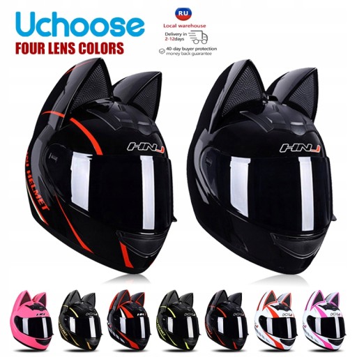 Мотоциклетный шлем с кошачьими ушками Женский шлем