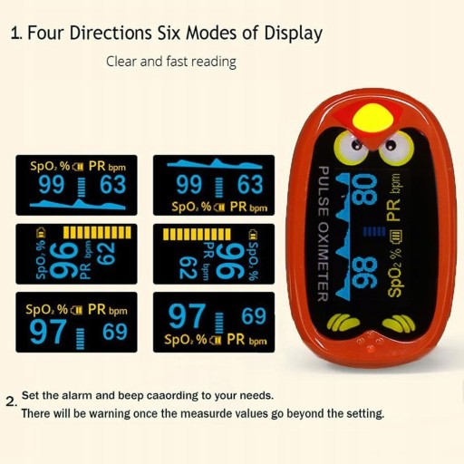 Pulsoksymetr dziecięcy TFT lekki pulsoksymetr napalcowy klips na palec TFT kolorowy ekran pulsoksymetr monitorowanie tętna Cechy:1. Duży ekran o wysokiej rozdzielczości: wyświetlacz TFT, samoświetlny, bez martwych punktów, wyraźne dane na pierwszy rzut oka.2. Automatyczne wyłączanie: wyłączy się automatycznie w ciągu kilku sekund bez palca, co jest energooszczędne i przyjazne dla środowiska.3. Komfort: wbudowana silikonowa forma, miękka i wygodna, lepsze dopasowanie.4. Piękny: ten produkt jest wykonany z funkcjonalnego wykwintnego kunsztu, a wygląd jest bardzo stylowy i piękny.5. Przenośny: obsługa jednym klawiszem, sekundy, aby wyświetlić wyniki testu, lekki i łatwy do przenoszenia, monitor nasycenia tlenu we krwi w dowolnym miejscu i czasie.Opis:Może być używany jako monitorowanie tętna, nie zajmuje dużo miejsca i można go łatwo zabrać.Dane techniczne:Wyświetlacz: TFTGarnitur dla: opłat za pokój nie pobiera się od dzieci doTyp: pulsoksymetrPakiet zawiera:1 * pulsoksymetrUwagi:1. Proszę pozwolić 0-1 cal błąd ze względu na pomiarze ręcznym. Dziękuję za twoje zrozumienie.2. Monitory nie są skalibrowane tak samo, kolor elementu wyświetlany na zdjęciach może nieznacznie różnić się od rzeczywistego obiektu.