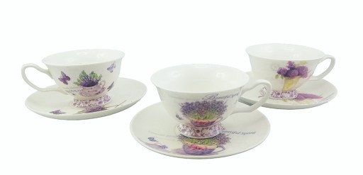 PIĘKNEJ PORCELANOWEJ FILIŻANKI Z LAWENDOWYM MOTYWEM.