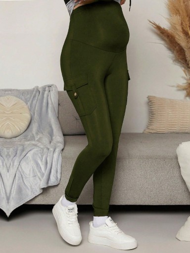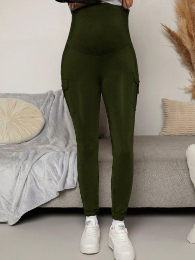 ТЕМНО-ЗЕЛЕНЫЕ БРЮКИ ГЛАДКОГО КРОЯ С ДЛИННЫМИ КАРМАНАМИ SHEIN 38