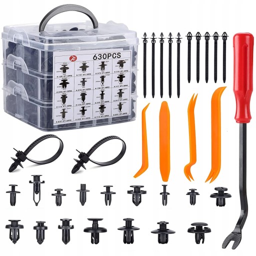 Niezbędny zestaw dla każdego samochodu - 630 klipsów otwieraków samochodowych, trwały materiał i pełne wyposażenie!