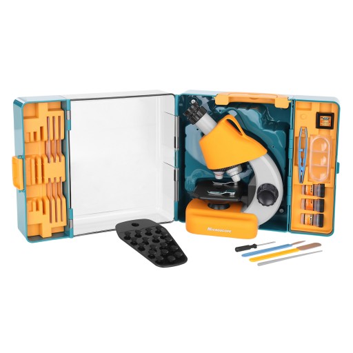 Mikroskop zamknięty jest w niezwykle funkcjonalnej walizce, dzięki której dziecko może w wygodny sposób przenosić zestaw. Dodatkowo podczas badań zamienić ją może w praktyczne stoisko - stolik do obserwacji.