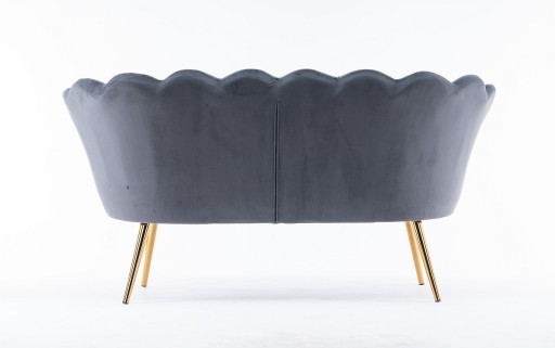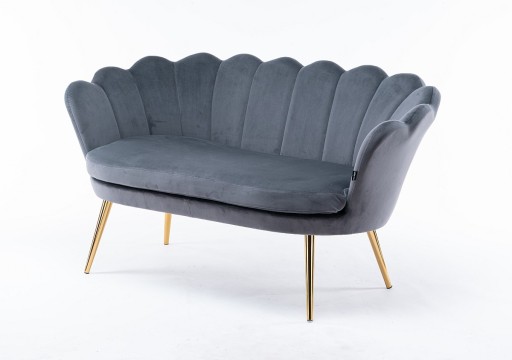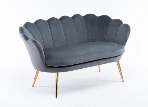 Sofa o nietuzinkowym kształcie, niezwykle wygodna dzięki głębokiemu siedzisku. Siedzisko tapicerowane miękką tkaniną welurową z pionowymi przeszyciami wewnątrz siedziska. Stabilne siedzisko zapewniają cztery nogi malowane proszkowo w kolorze złotym. Ten piękna sofa nada blasku każdemu wnętrzu. Produkt wysokiej jakości wykonany z najlepszych materiałów.