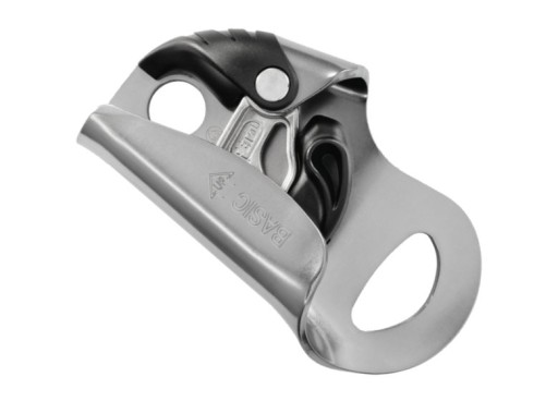 Konstrukcja Petzl BASIC obejmuje szeroki dolny otwór do wpięcia karabinków lonży i pętli nożnej, co ułatwia manipulację sprzętem podczas wspinaczki. Górny otwór do wpięcia liny umożliwia szybkie i bezpieczne mocowanie.