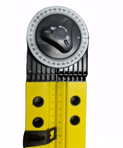 Posiada kątomierz o zakresie mierzenia 0°- 270°, poziomnicę o długości 500 mm z dwoma libellami, przymiar liniowy o długości 50 cm.