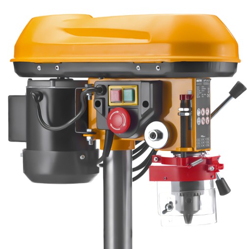 ✅ REGULACJA OBROTÓW Wiertarka stołowa wyposażona została 9 stopniową w regulację obrotów, która znacząco ułatwia dostosowanie urządzenia do wiercenia w różnych materiałach zaczynając od metalu, drewna, stali, aż po tworzywa sztuczne i materiały innego rodzaju.