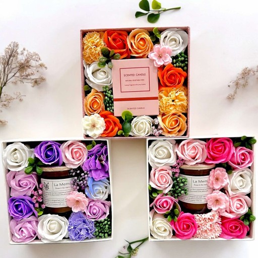 Flower Box kwiaty mydlane ze ŚWIECA w pudełku prezent dla nauczyciela