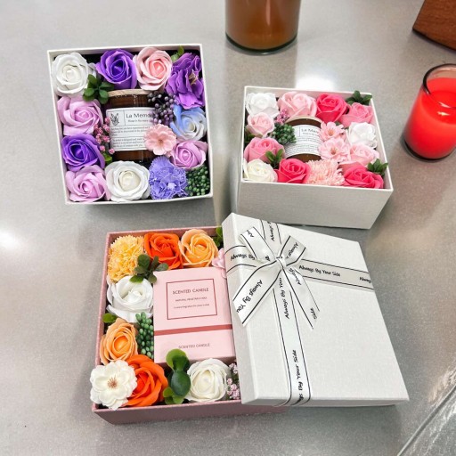 Flower box z mydlanymi kwiatami i świecą zapachową to idealny pomysł na prezent na każdą okazję!