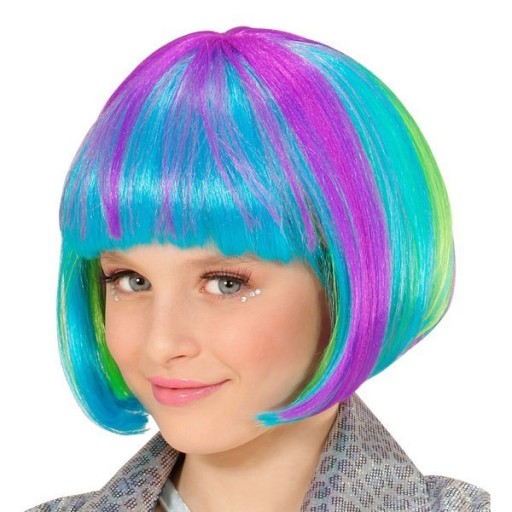 Peruka dziecięca piosenkarka kolorowa bob niebieski fioletowy zielony.