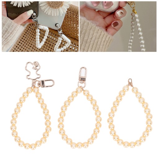 szt. Perłowy łańcuszek do telefonu Różne style Wysoki połysk, dokładne polerowanie 10 mm Perłowa smycz na nadgarstek z metalową klamrą do dekoracji H11 Kość słoniowa żółta
