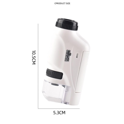 Kompaktowy rozmiar: ten ręczny mikroskop jest bardzo odpowiedni dla dzieci, mały rozmiar, łatwy do wprowadzenia, bez standardowej operacji, wystarczy obrócić ten, aby powiększyć i pomniejszyć, co jest bardzo skuteczną metodą dla procedury