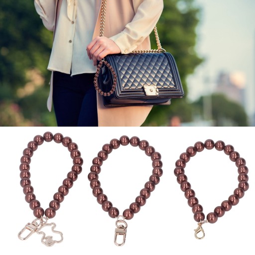 3 szt. 12mm perłowy łańcuszek do telefonu trzy style delikatny kolor perłowy futerał na telefon komórkowy klucz wiszący łańcuszek z metalową klamrą brązowy