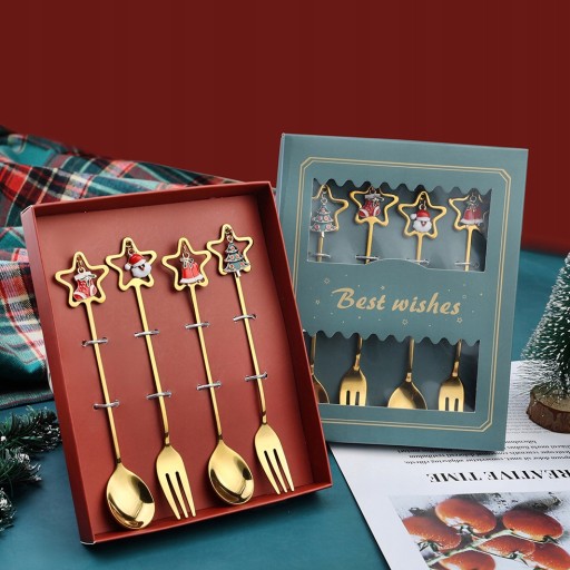 🌟Cechy:zestaw czterech łyżek i widełek w świątecznym opakowaniu