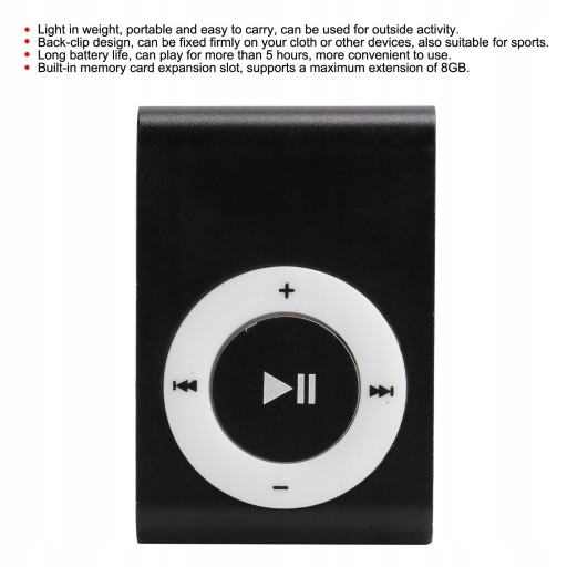 2. Konstrukcja z klipsem z tyłu, może być mocno zamocowana na ubraniu lub innych urządzeniach, odpowiednia również do uprawiania sportu.