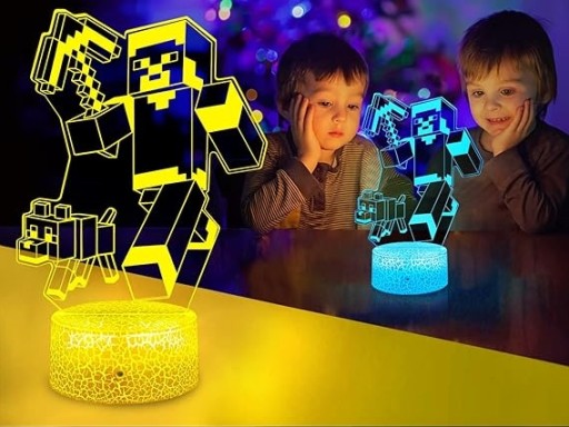 3D LAMPKA NOCNA LED MINECRAFT 16 KOLORY+ PILOT Prezent na Dzień Dziecka