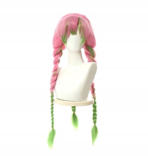 Peruka z trzema warkoczami w kolorze różowym z zielonymi końcówkami,