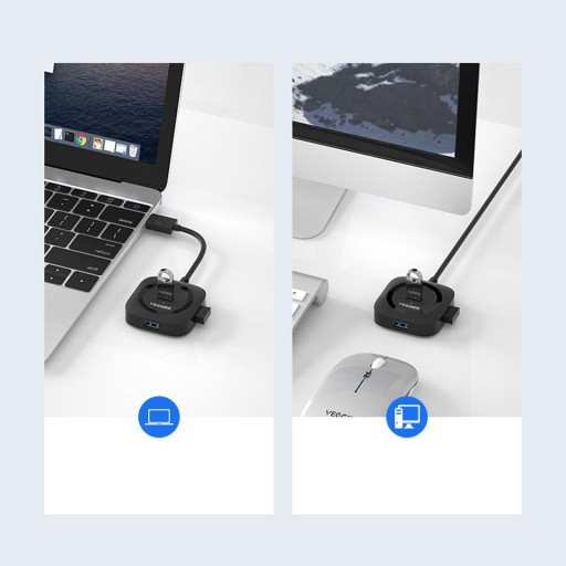 Plug and Play: koncentrator USB do podłączenia maksymalnie 4 urządzeń USB, takich jak mysz, klawiatura, drukarka, aparaty cyfrowe, kamery, głośniki, czytniki kart.