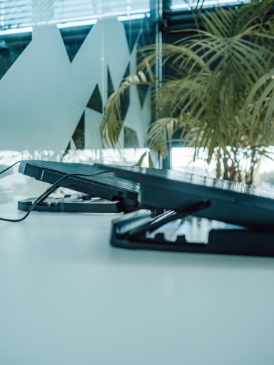 ✅Użytkując ją w pozycji poziomej, warto na nóżki podstawki nakleić dodatkowe podkładki filcowe (np. takie do nóżek od mebli), aby stała ona o kilka milimetrów wyżej nad powierzchnią blatu stołu. Wtedy chłodzenie wyraźnie się zwiększy. Przy pracy w pochyleniu nie jest to potrzebne.