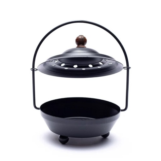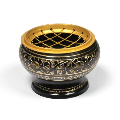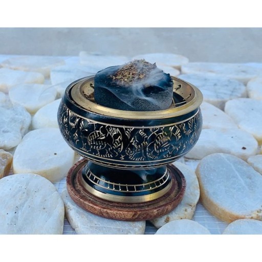 Sposób użycia: Napełnij kadzielnicę do 2/3 drobnym piaskiem lub kamyczkami. Umieść tlący się węgiel drzewny i/lub kadzidło na wierzchu.Gdy kadzidło dobrze się tli, zamknij pokrywkę.