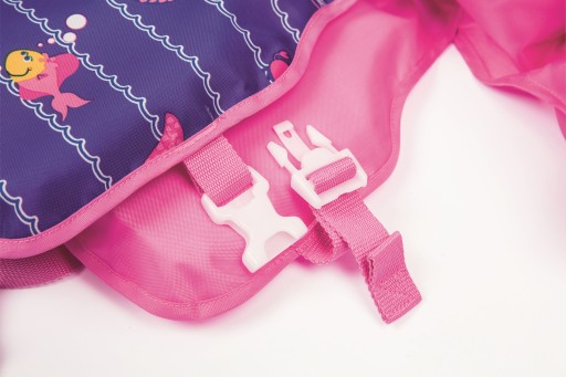 - regulowane klamry i paski poprawiają dopasowanie kamizelki i utrzymują dziecko w bezpiecznej pozycji
