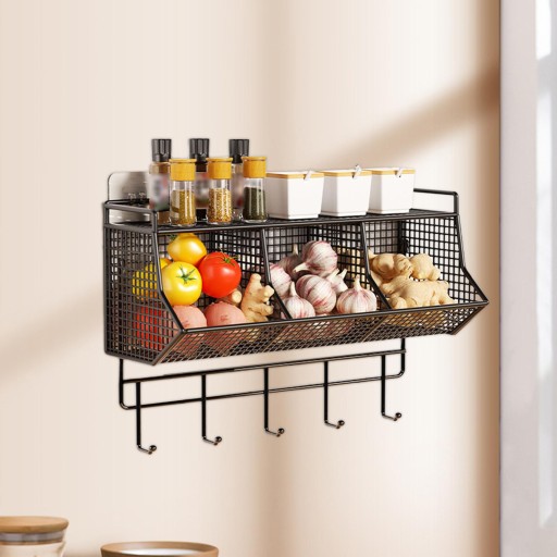 [Otwarte]: Metalowy drut wiszącego organizera ściennego umożliwia cyrkulację powietrza, dzięki czemu przechowywane owoce i warzywa pozostają świeże, dzięki czemu wszystko jest wyraźnie widoczne i łatwo dostępne.
