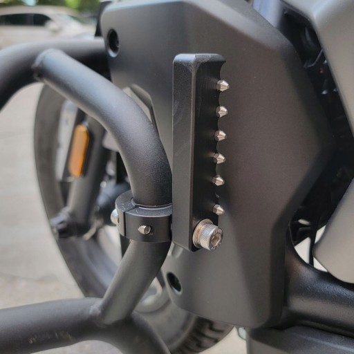 2. Bezpieczny montaż: klips mocujący bezpiecznie zaciska zderzak motocykla, a konstrukcja blokująca utrzymuje pedały pod pożądanym kątem.