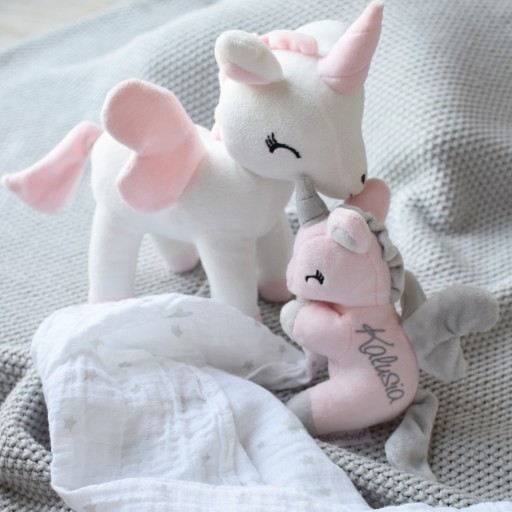 Zachęcamy do skorzystania z możliwości spersonalizowania maskotki, dzięki czemu stanie się ona jeszcze bardziej wyjątkowa dla swojego Małego Właściciela. W celu zamówienia jednorożca w wersji spersonalizowanej w okienku należy wpisać treść oraz kolor napisu. Napis wykonujemy z folii odzieżowej.
