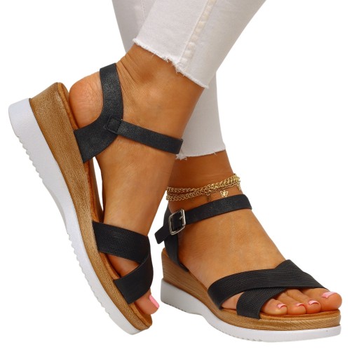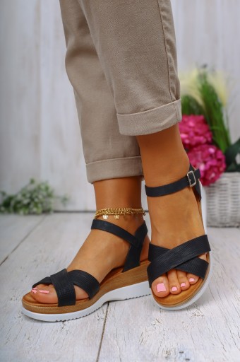 Damskie sandały na grubej podeszwie w kolorze czarnym. Komfortowa, profilowana wkładka sprawia, że idealnie nadają się do codziennego użytkowania. Prosty fason w połączniu z każdą stylizacją doda elegancji. Idealne na lato, na spacery, oraz wyjścia, są miękkie, cieszące się uznaniem wielu, dodają stylu. Zapięcie na sprzączkę ułatwia dopasowanie obuwia do stopy.