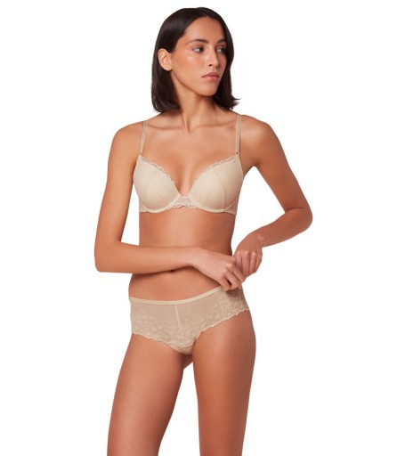 Koronkowy biustonosz typu push-up, doskonale podnosi i optycznie powiększa biust. Niesamowicie komfortowy, doskonale sprawdzi się przy głębokim dekolcie. Najmodniejszy push-up tego sezonu.
