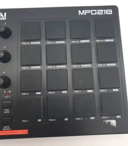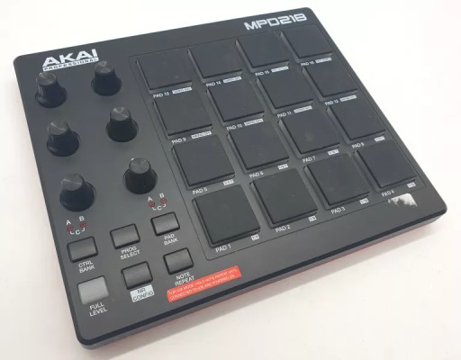 AKAI MPD 218 to kontroler padowy USB/MIDI, który stworzony został dla producentów, programistów, DJ'ów i wszelkiej maści artystów muzycznych, poszukujących narzędzia, które wyzwoli twórczą pasję. Otrzymujemy tutaj 16 dynamicznych padów "Thick Fat" z czerwonym podświetleniem wraz z trzema dostępnymi bankami. Do tego sześć programowalnych potencjometrów 360 stopni, 16 presetów użytkownika, funkcje full level czy mpc note repeat. Dzięki niewielkim rozmiarom, urządzenie może podróżować z nami wszędzie. W zestawie otrzymujemy Ableton Live Lite, Akai Pro MPC Essentials, Sonivox Big Bang Cinematic Percussion oraz Big Bang Universal Drums.