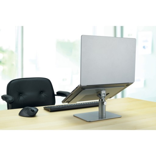 Dzięki uniwersalnej podstawce pod laptopa możesz podnieść ekran na wysokość oczu, aby uzyskać optymalny kąt do patrzenia, a przy tym ograniczyć bałagan na biurku.